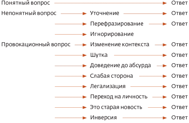 Вопросы первой категории не опасны и предполагают исключительно конструктивный ответ. Они помогают оратору обнаружить те моменты в его выступлении, которые он недостаточно понятно объяснил или вообще упустил. Выступающий может легко исправить эту ситуацию своим ответом. Тут главное – не чувствовать себя как на экзамене или допросе, ведь вы приходите к людям, чтобы поделиться информацией, опытом, собственным видением, а значит, если кто-то в зале говорит о непонимании, вероятно, он такой не один, и лучше подробнее остановиться на этом моменте и пошире осветить тему. Каждый ответ на вопрос дает вам возможность сообщить дополнительную информацию о себе и своем опыте.