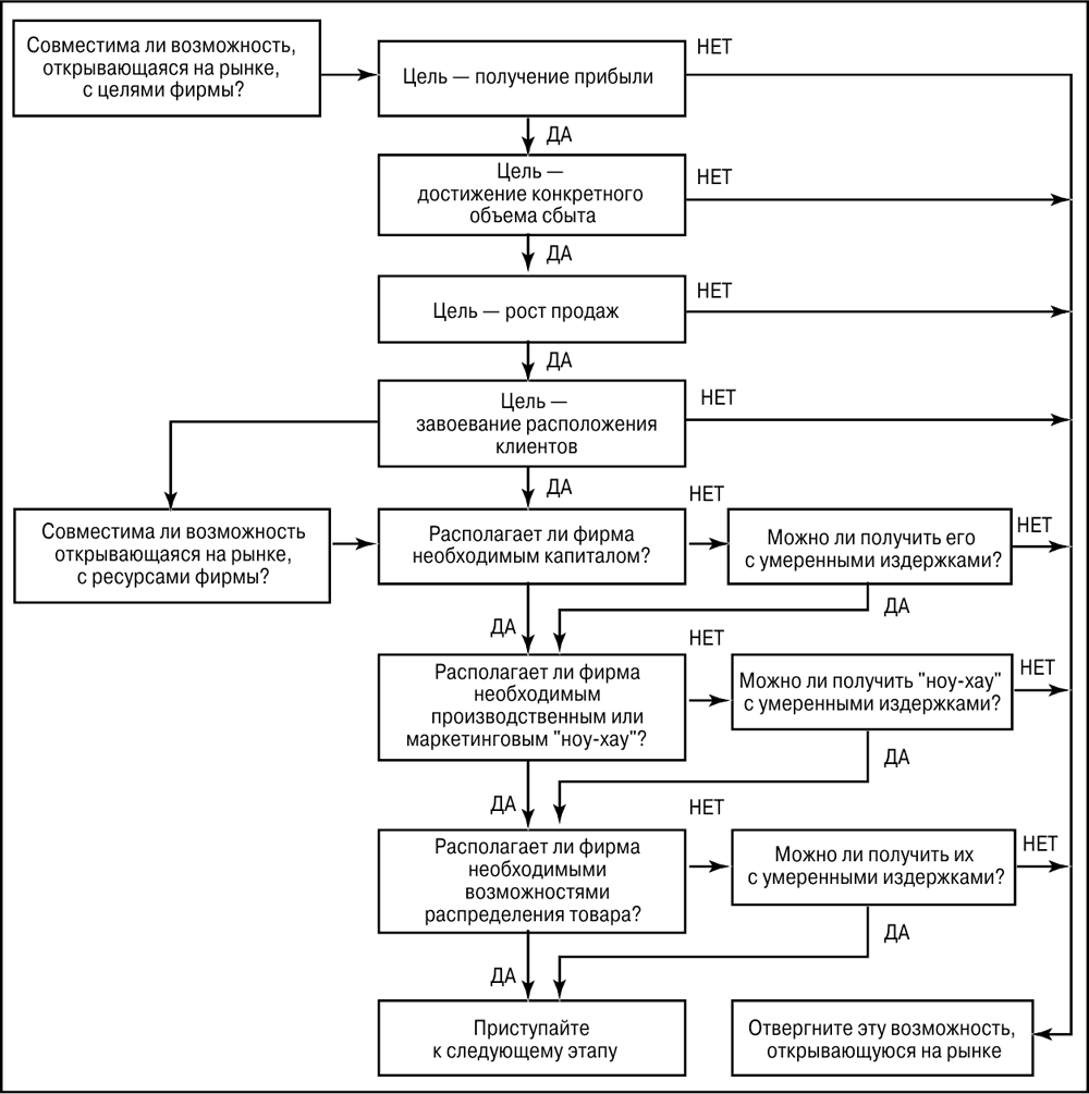 Рис. 2.3. Оценка рыночных возможностей с точки зрения целей и ресурсов фирмы