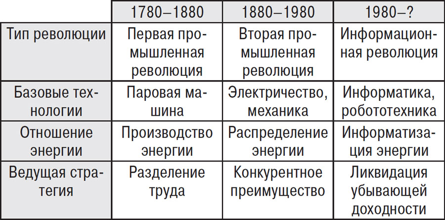 Рост стоимости информации знаменовал собой нечто вроде революции, изменившей законы экономики и стратегии. Можно предположить, что экономика, как и наука (согласно Томасу Куну), переживает в своем развитии периоды эволюции в рамках одной и той же парадигмы и революционные скачки, приводящие к смене господствующей парадигмы.