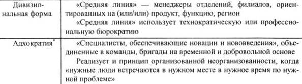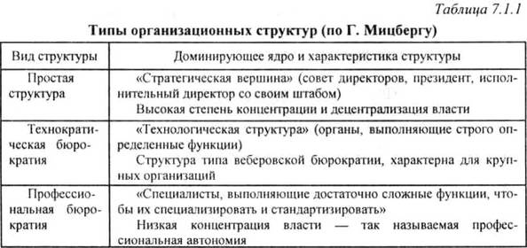 Таблица 7.1.1. Типы организационных структур (по Г. Мицбергу)