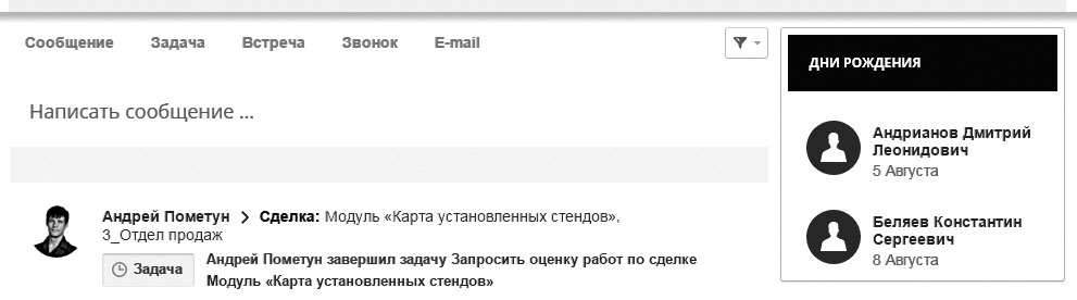 Рисунок 37. Модуль напоминания о днях рождения в Битрикс24.
