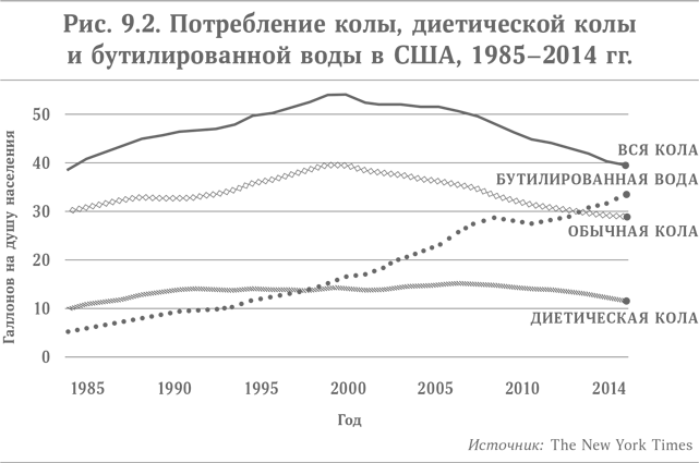 Проигрывают в этой битве паста, сладкая кола, сливки, ростбиф и бекон. Последние десять лет их потребление на душу населения падает. Снижаются даже объемы продаж диетической колы. Наряду с курицей безоговорочную победу одерживают также рыба и креветки. По данным Национального института рыболовства, за период с 2001 по 2012 г. потребление белой рыбы возросло примерно на 50 %, а потребление креветок – лишь немногим меньше.