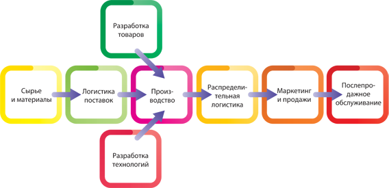 Цепочка ценности – это по сути период от создания продукта из сырья и компонентов до непосредственного потребления данного продукта клиентом