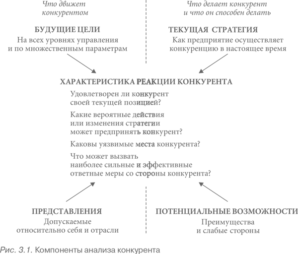 Несмотря на явную потребность в тщательном анализе конкурента при формулировании стратегии, такой анализ далеко не всегда проводится достаточно четко и всеохватывающе. Этому могут помешать опасные суждения о конкурентах, исходящие от менеджеров: «Систематический анализ конкурентов невозможен», «Мы знаем все о наших конкурентах, потому что сталкиваемся с ними ежедневно». Подобные мнения, как правило, неверны. Другая трудность состоит в том, что всесторонний анализ конкурента требует значительного объема данных, большую часть которых нелегко получить, не приложив значительных усилий. Многие компании не занимаются систематическим сбором информации о конкурентах, а действуют на основе отрывочной информации, неформальных впечатлений, догадок и интуиции. Отсутствие качественной информации чрезвычайно затрудняет анализ конкурента.