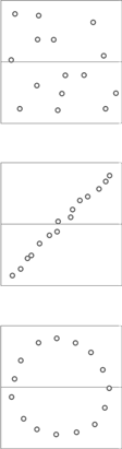 При отображении в визуальной форме выявляется четкая схема: первый набор беспорядочно распределен, второй представляет собой линию, третий — окружность.