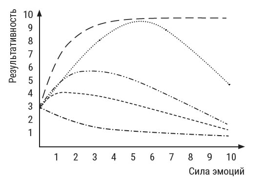 Посмотрите на рисунок с кривыми эмоций и результативностью. Авторство модели принадлежит известному психологу, автору книг по тренингу и бизнесу Е. В. Сидоренко.