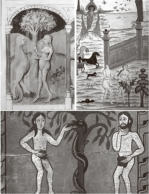 Какая важная деталь объединяет эти изображения Адама и Евы?