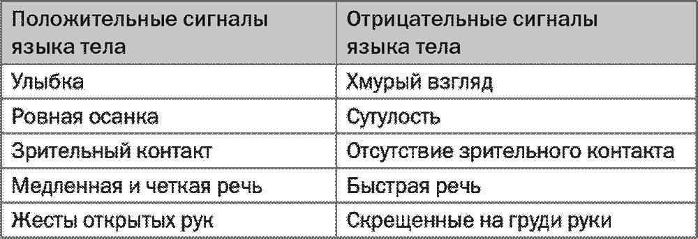 Язык тела может нести в себе положительные и отрицательные сигналы. Вот несколько примеров: