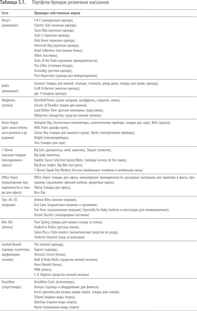 Ведущие розничные сети, торгующие товарами под собственными марками, комбинируют три типа розничных брендов – немаркированные товары, бренды-имитаторы и высококлассные бренды – с тремя типами сегментации – по ценам, по товарным категориям и по типам потребительских выгод. Так они создают комплексные портфели собственных марок (табл. 5.1). Особенно это характерно для крупных торговых сетей и супермаркетов. На примерах магазинов Wal-Mart и Tesco покажем эталонную практику управления мультибрендовыми портфелями.