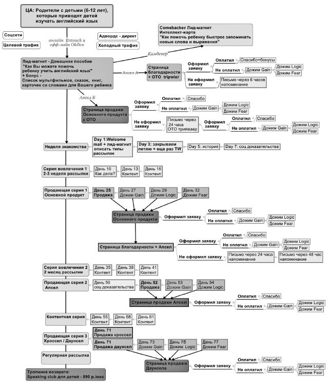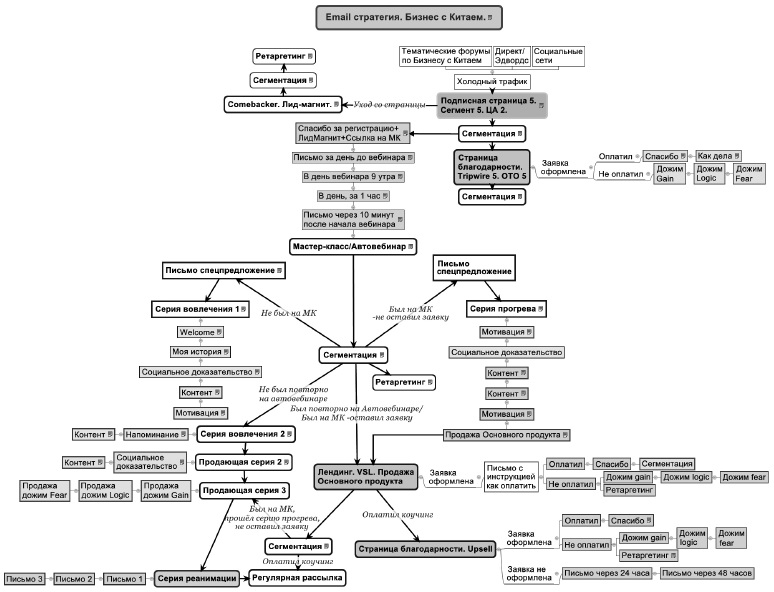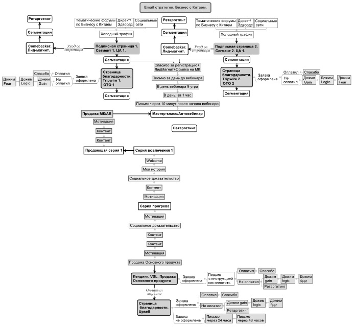 Именно это имел в виду Михаил Дашкиев, говоря о тоннелях в предисловии. Создавая воронку продаж, мы учитываем основные сегменты нашей аудитории и готовим стратегию общения с каждым отдельно. Так, чтобы после привычной регистрации на сайте система начала общаться с человеком и продавать ему.