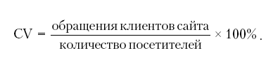 Отношение количества оставивших заявку на сайте (или позвонивших) к общему количеству посетителей: