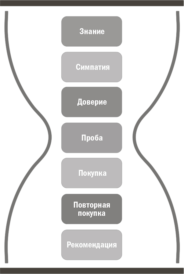 Очевидно, что все мы хотим дойти до этого этапа. Однако в структуре песочных часов это всего лишь очередной шаг в достижении конечной цели – полного удовлетворения потребителя.