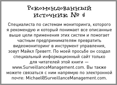 Множество мелких бизнесменов пытаются добиться от работников выполнения правил, постоянно околачиваясь в конторе и каждому заглядывая через плечо. Если вы узнали себя, я вам сочувствую. Прикованные к своему бизнесу, вы – словно большой глупый слон, прикованный за ногу к вбитому в землю столбу. Вы в тюрьме. Разумеется, я думаю, что у вашей паранойи есть все основания, только вы лечите ее не теми средствами. Установите хорошую систему наблюдения, научитесь пользоваться ей через ноутбук, и сможете в любой момент наблюдать за работой ваших сотрудников, где бы вы ни находились. Можете пойти куда-нибудь в тихое местечко, чтобы поработать над своим бизнесом, можете провести приятный вечер в лодке с удочкой на озере, – все время присутствуя в своем бизнесе. Вы одновременно свободны и находитесь сразу в нескольких местах.
