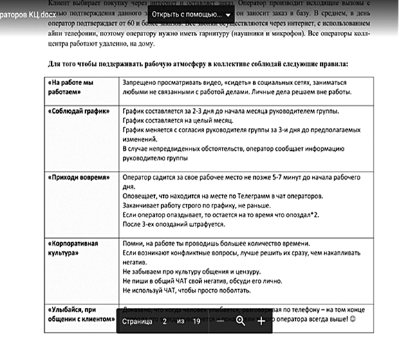Это не должна быть «простыня на сто листов». Здесь мы размещаем лишь самые основные правила, которые будем предъявлять сотруднику.