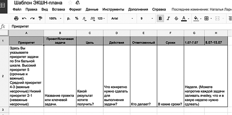 Для формулировки задач предлагаю использовать отчет, в котором прописаны действия для достижения результата, а для каждого действия намечен срок исполнения. Такой инструмент называется «Экшн-план».