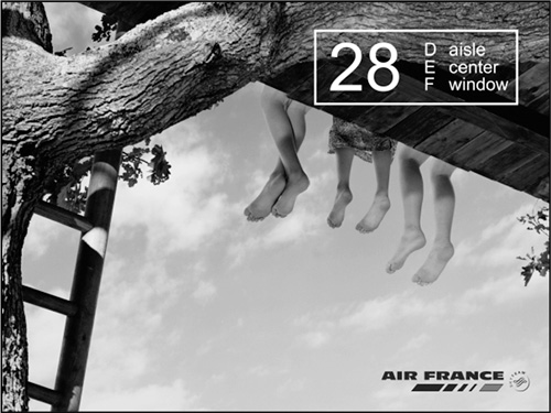 Теперь задействуем любопытство. Ваше место 8B? Посмотрите, какие ощущения вас ожидают (рис. 53). Вы путешествуете всей семьей? Ваши места 28D, E, F? Вспомните, как в детстве вы залезали на дерево и часами сидели на нем, болтая ногами и разговаривая с друзьями обо всем на свете (рис. 54).