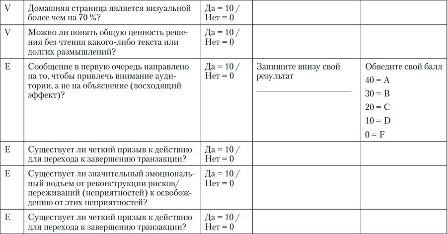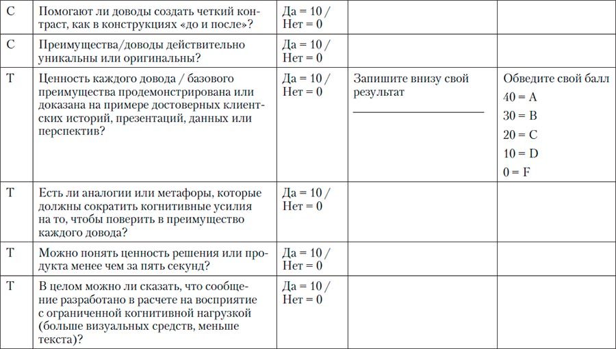 После оценки каждого стимула вы можете воспользоваться следующей таблицей для обобщения набранных оценок.