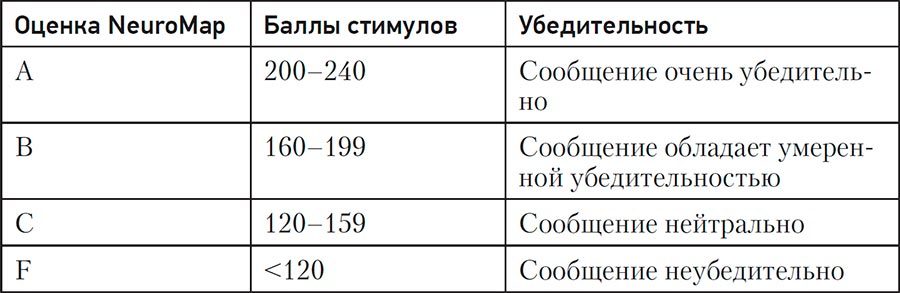 Наконец, вычислите оценку NeuroMap по следующей таблице: