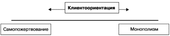 Это предельные случаи клиентоориентации – монополизм и самопожертвование (рис. 1.6). Минусы монополизма: нет стимула к развитию, исчезает любознательность, азарт, жиреешь, наглеешь, перестаешь осматриваться. И тут тебя с какой-нибудь стороны (технологической, политической, экономической – неважно) «вдруг» обходят, лишают монополизма. А играть в конкурентные игры ты отвык или никогда не умел.