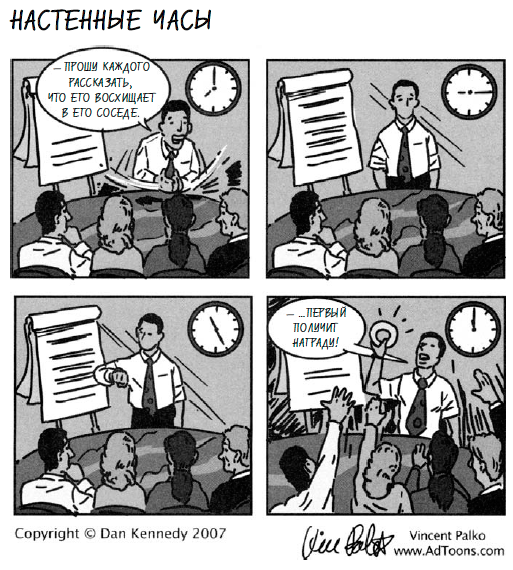 Одним словом, всякое «веселье» на работе полезно, только если комбинируется с другими важными компонентами, ни один из которых не «весело» ни обсуждать, ни налаживать. Если вы попытаетесь скопировать себе только одно «веселье», то рано или поздно окажетесь клоуном в совершенно не веселом шоу под названием «слушание дела о несостоятельности».