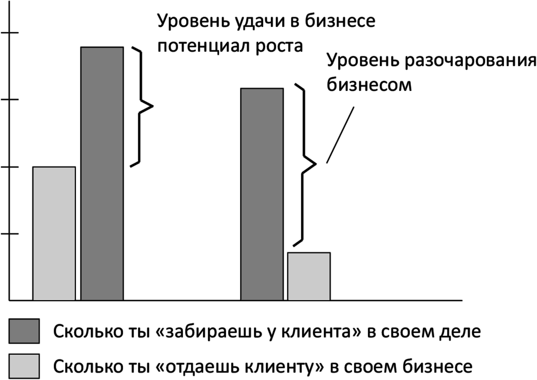 Получается, что существует некий уровень удачи в бизнесе (рис. 30), который пропорционально зависит от того, что предложение превосходит ожидания.