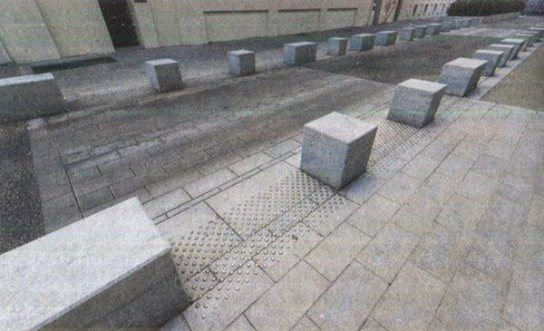 Рис. 5.3. Физические разделители между тротуаром и проезжей частью. Интересный прием — отсутствие бордюра, разделяющего дорогу и тротуар. Попадая в непривычную для себя среду, водители снижают скорость. Для защиты пешеходов используют гранитные кубы (фото: Илья Варламов www.varlamov.ru)