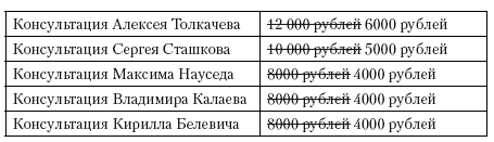 Специально для вас как для владельца корпоративной книги действует скидка 50 % на базовую консультацию. Плюс в подарок вы получите книгу Николая Мрочковского и Андрея Парабеллума «Выжми из бизнеса всё!».