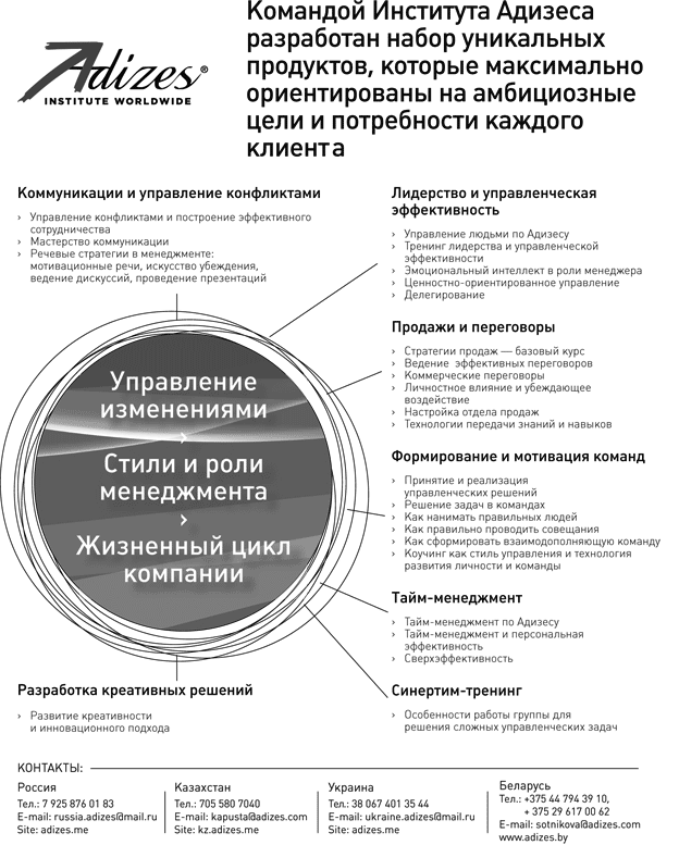 Институт Адизеса (Adizes Institute, USA) — это международная консалтинговая организация, входящая в десятку лучших консалтинговых компаний мира по рейтингу Leadership Excellence.