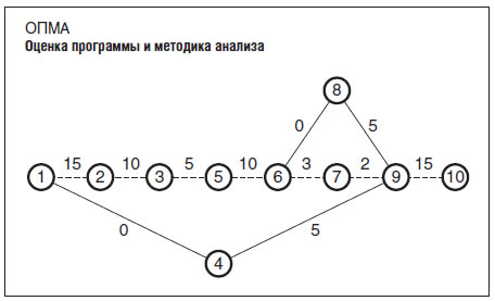 Рисунок, приведенный ниже, показывает, что дела, которые могут осуществляться параллельно, находятся на различных уровнях. ОПМА позволяет определить все существенно важные действия и время их выполнения, необходимые для своевременного завершения проекта.