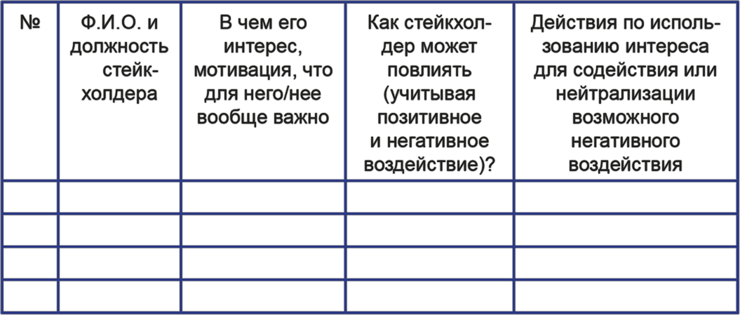 Таблица для анализа стейкхолдеров: