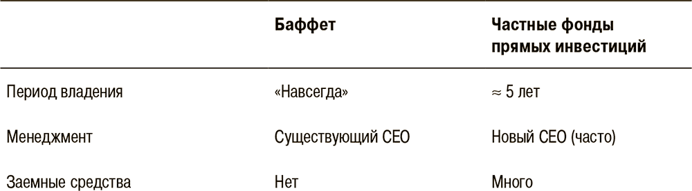 Подход Баффета к приобретению частных компаний против подхода частных фондов прямых инвестиций