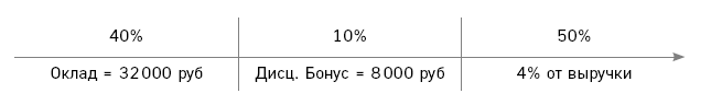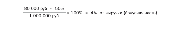 Разберем на нашем примере. При плане продаж 1 000 000 рублей и зарплатных ожиданиях 80 000 рублей в месяц выходит: