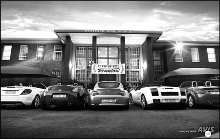 На 10-летие окончания школы молодые люди приехали на спортивных тачках самых престижных моделей. Важная особенность для понимания ситуации. Это реклама не люксовых автомобилей, а услуг по их аренде. Вот насколько просто и легко можно произвести впечатление на одноклассников и, конечно же, одноклассниц!