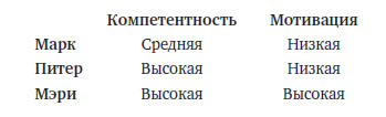 Если для выполнения работы существует несколько возможных кандидатов, то может оказаться полезным оценить их компетентность и мотивацию, используя простую трехуровневую шкалу: низкий уровень, средний уровень и высокий уровень. Например: