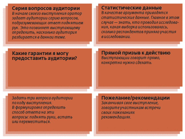 ? по ходу выступления задать аудитории три вопроса. В формулировке определить способ ответа на них (присутствующие должны поднять руки, встать, переместиться?);