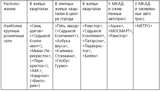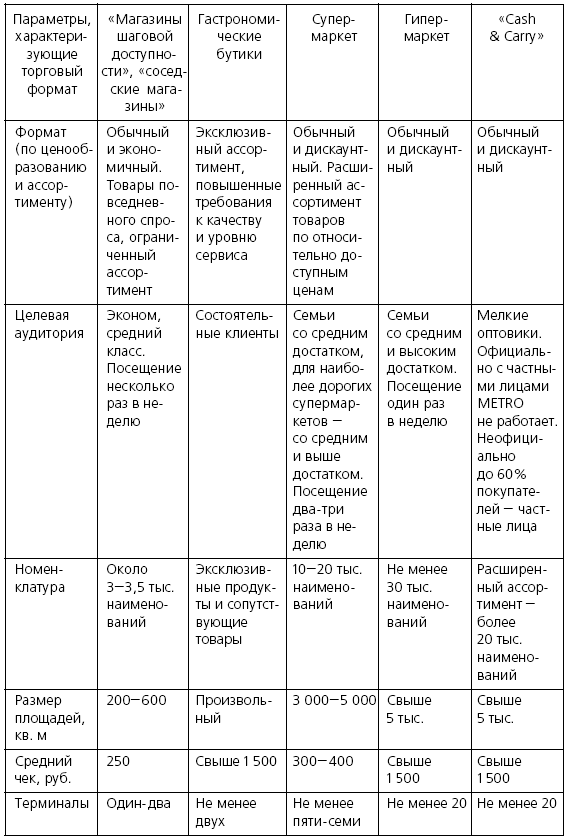 В качестве иллюстрации такой классификации можно привести форматы сетевых компаний, работающих в Москве (табл. 6.9).