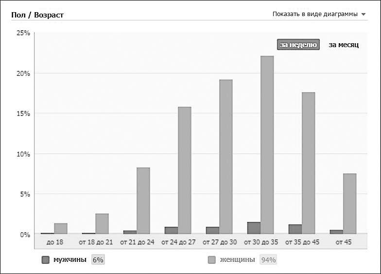 На рис. 3 показан график, по которому мы будем считать процент нашей целевой аудитории в сообществе. 19,1 % женщин, от 24 до 27