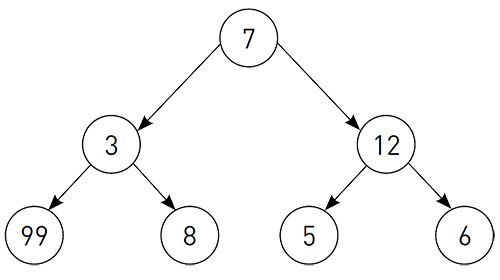 Допустим, нам нужно сделать три шага, сверху вниз, по стрелочкам. В кружочках написано, какой выигрыш мы получаем на каждом шаге, и наша задача — получить максимальный общий выигрыш. На первом шаге мы в любом случае получаем 7. На втором шаге жадный алгоритм из 3 и 12 выберет 12, и тогда на третьем шаге выбор будет между 5 и 6. В результате общий выигрыш 7+12+6=25, хотя, выбрав на втором шаге 3, можно было выиграть 7+3+99=109. Я абсолютно убеждена, что в ранней молодости, когда вся жизнь впереди, нельзя позволять себе жить по жадному алгоритму. Если беззаботная молодость и должна о чем-то заботиться — так это о собственном будущем! Поэтому нельзя пускать на самотек учебу ради дела, которое удовлетворяет всего лишь вашим сегодняшним нуждам.
