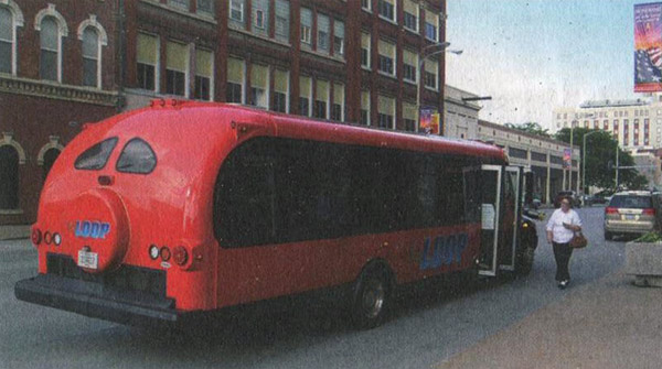 Рис. 3.8. В центре г. Давенпорт (штат Айова) автобус The Loop выставляет напоказ свою заднюю часть, оформленную в стиле Studebaker