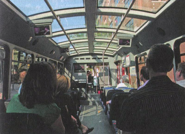 Рис. 3.9. Благодаря стеклянной крыше салон наполняется естественным светом, а пассажиры могут наслаждаться архитектурным пейзажем с небоскребами в полный рост
