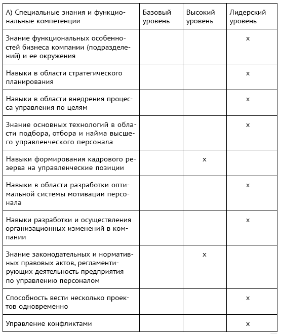Пример «профиля успеха» должности директора департамента по управлению персоналом