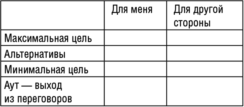 Бывает, что переговоры завершились, а в итоге дела обстоят еще хуже, чем если бы эти переговоры не начинались. Подумайте: чего вы должны добиться как минимум?