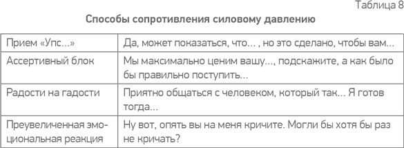 Выбор способа реакции на силовое давление зависит от того, какая роль вам кажется наиболее подходящей на данном этапе взаимодействия.