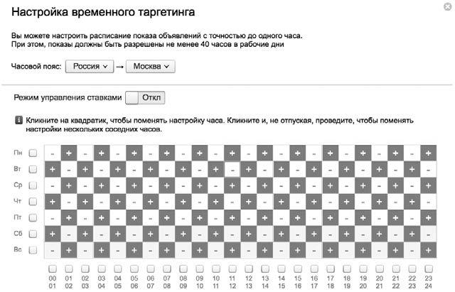Настройка временного таргетинга для «шахматок»