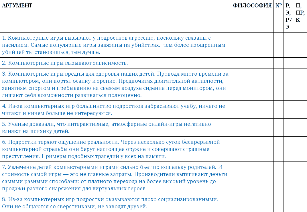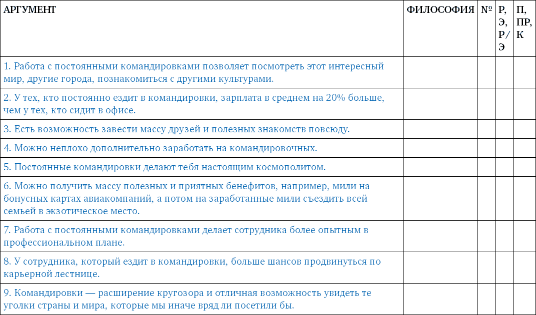 1) Ниже представлены аргументы, полученные в ходе мозгового штурма в поддержку определенного тезиса. Ваша задача: определить философию каждого аргумента, структурировать и объединить аргументы с одинаковой ценностью, продумать подачу аргумента (Р, Э, Р/Э). Если необходимо – придумать дополнительные варианты поддержки, примеры, картинки.