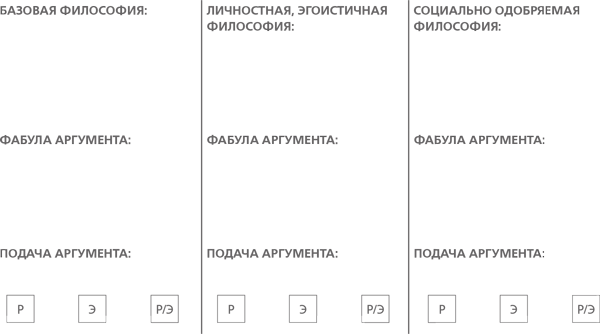 2) Выберите три философии убеждения и подберите к ним три аргумента, доказывающих предложенные тезисы. Важно, чтобы все три ценности соотносились с описанной выше концепцией триады.