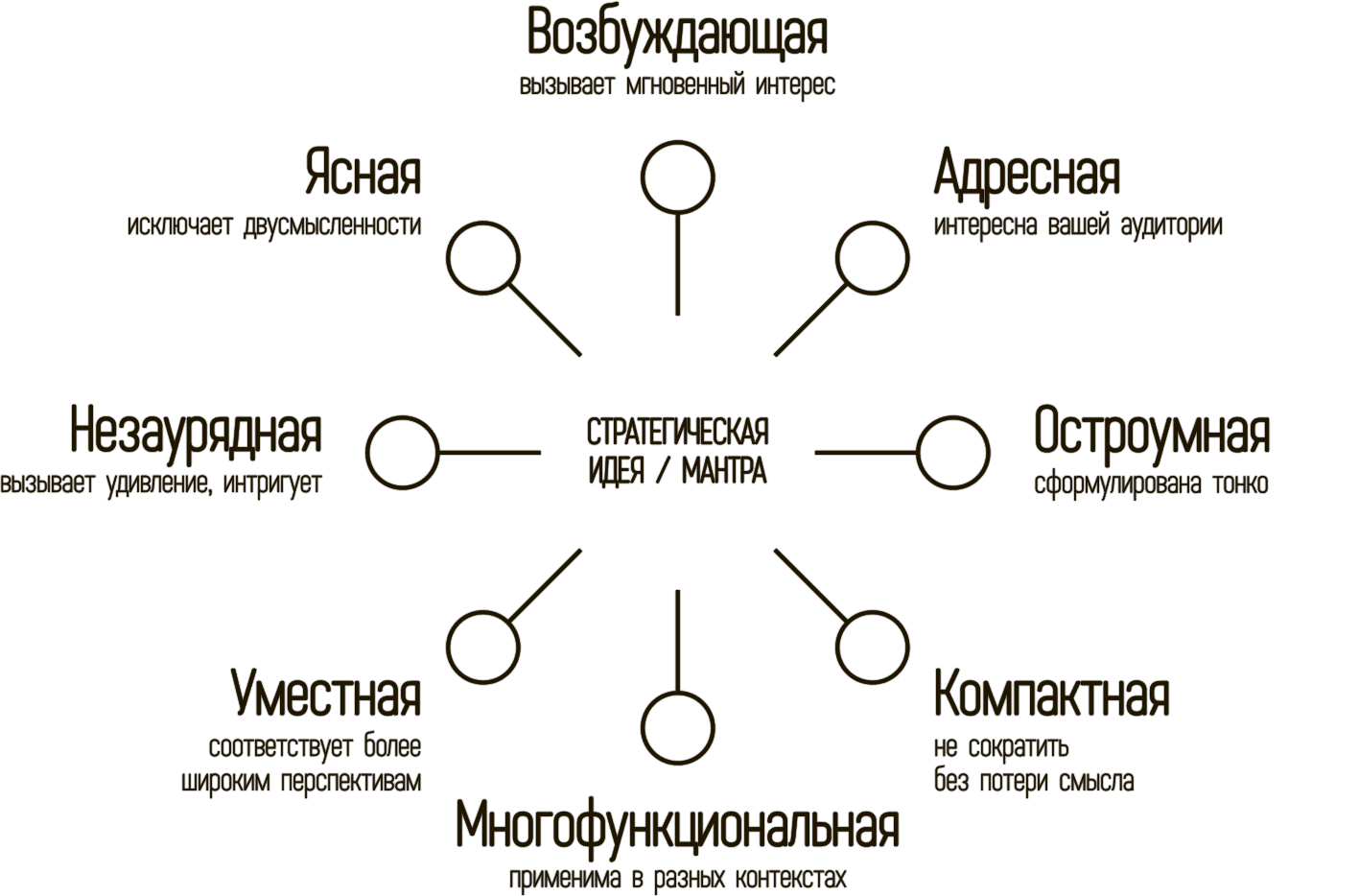 Как можно реализовать идею Makoto на практике? Фундаментом любой сильной концепции является стратегическая идея или стратегическая мантра. Какой она должна быть? Мне много раз задавали этот вопрос, поэтому я сформулировал 8 критериев, которым должна соответствовать такая мантра. К сожалению, все они не поддаются объективной оценке.