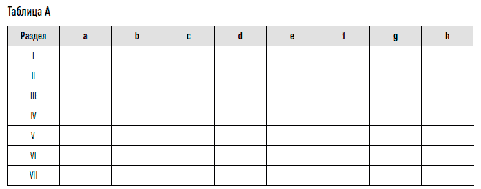 Перенесите баллы, набранные по каждому разделу, в таблицу А. Таким образом, вам потом будет легче разместить их в таблице В, буквы в которой расположены в произвольном порядке. Подсчитайте сумму баллов в каждом из столбцов таблицы В, соответствующих различным типичным ролям в группе. Столбцы, в которых суммарное количество баллов оказалось самым большим, соответствуют наиболее типичным для вас ролям в рабочей группе.