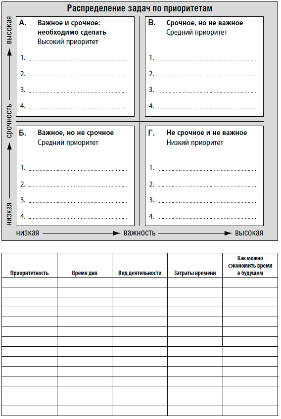 • Достаточно ли вы отвели времени на срочные и важные дела и не было ли слишком много времени затрачено на задачи с меньшим приоритетом?