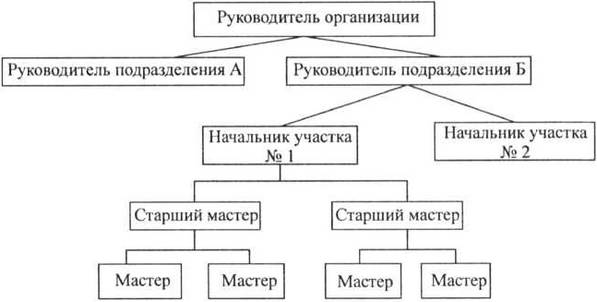 Поскольку в линейной структуре управления решения передаются по цепочке сверху вниз, а сам руководитель низшего звена управления подчинен руководителю более высшего над ним уровня, формируется своего рода иерархия руководителей данной конкретной организации (например, зав. секцией, начальник отдела, директор магазина или мастер участка, инженер, начальник цеха, директор предприятия). В данном случае действует принцип единоначалия, суть которого состоит в том, что подчиненные выполняют распоряжения только одного руководителя. В линейной структуре управления каждый подчиненный имеет своего начальника, а каждый начальник — несколько подчиненных. Такая структура функционирует в небольших организациях, а в крупных — на низшем уровне управления (секция, бригада и т. д.).
